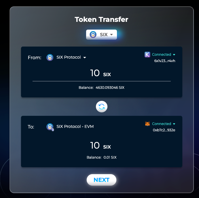 After receiving six tokens from the Fivenet Chain, we are now ready to transfer tokens between Cosmos and EVM.